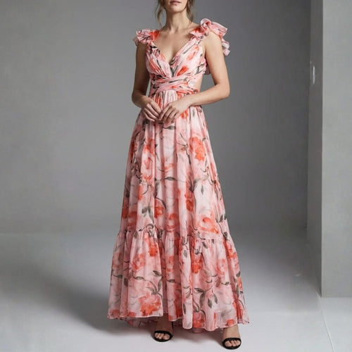 Aleson Women's Backless Floral Maxi Dress – Lightweight Open Back Summer Dress